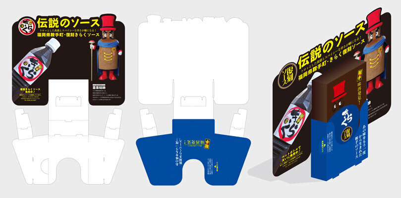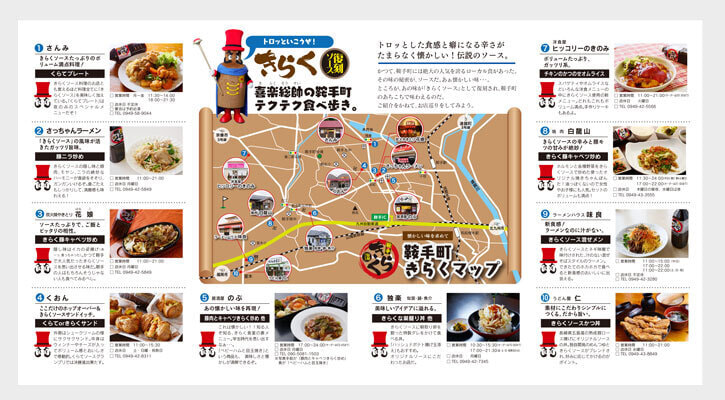 鞍手町の名物「きらくソース」のPRを目的として誕生したキャラクター。キャラデザインは鞍手町からの提供だが着ぐるみ製作を担当したのもあり、リーフレットとリーフスタンドのデザインを頂いた。