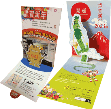 背面の形状も面積の範囲であれば好きな形状でデザインが可能です。キャラクターデザインのリーフレットを寝かせているよりも立たせた方が人目を引き、キャラも生きると考えられます。
