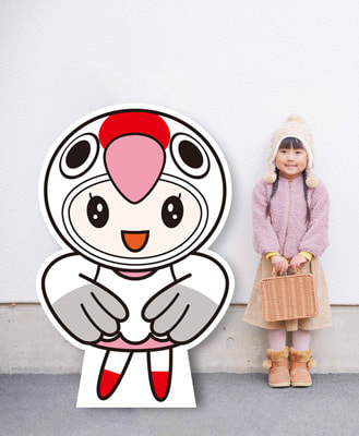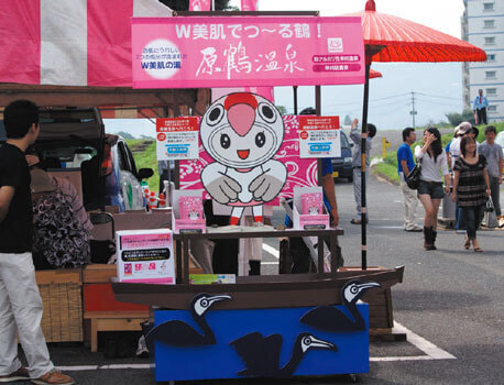 原鶴温泉の鶴をイメージし、若年層をターゲットに可愛いキャラにしました。