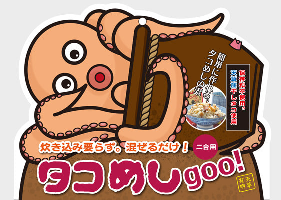 天草のタコめしパッケージとしてデザインしたキャラクターです。トムソン加工にして少しだけでもアイキャッチになるように配慮しました。