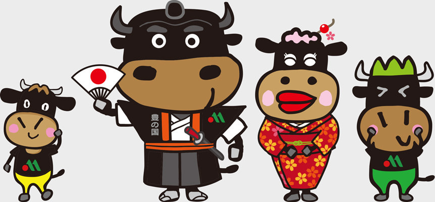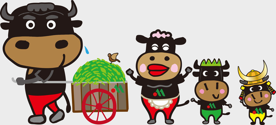 豊後牛のファミリーキャラを使い、ストリー性を持たせる構成にしています。