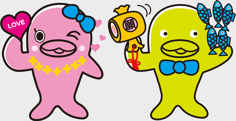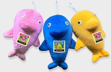 天草の名物「イルカウォッチング」をモチーフにした商品キャラクター。ぬいぐるみ専用Tシャツにプリント。