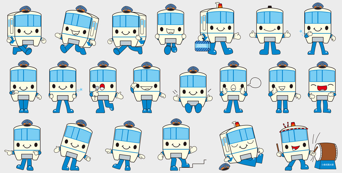 北九州モノレールのモーノくんです。着ぐるみ製作から生まれたキャラクターです。たくさんのポージング集も作成しました。