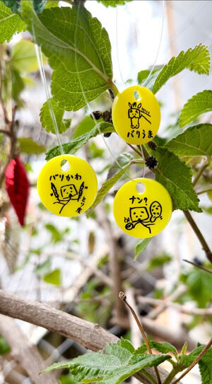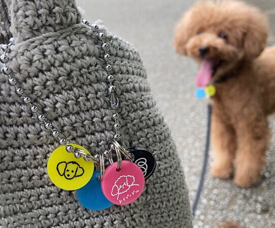 これをお好きな数だけひとまとめにしてバッグや財布、キーホルダーなどにチャラチャラとつけたり、愛犬の首に名前入りでつけたりなど使い方は自由です。